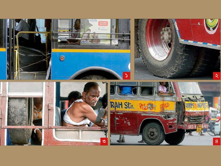 সত্যিই কি তা-ই? রবীন্দ্র সদন মোড়ে একটি বাসের কাঠামো দেখে রীতিমতো চমকে গিয়েছিলেন সুপর্ণা সাহা। তিনি বাসেই নিয়মিত যাতায়াত করেন। সুপর্ণা বললেন, ‘‘এমন অনেক বাস আছে, দেখেই মনে হয়, কী ভাবে চলছে? উত্তর জানি না। জানতে চাইও না। তা হলে তো বাসেই উঠতে পারব না।’’ আর এক বাসযাত্রীর কথায়, ‘‘নিরাপদে যদি যাওয়া যায়, তা হলে এক-দু’টাকা বেশি দিতে তো আপত্তি নেই। কিন্তু রোজই যে রকম দুর্ঘটনা ঘটে শুনি, তাতে নিরাপত্তাটা কোথায়? সরকার আর বাসমালিকদের ভাড়া বৃদ্ধি নিয়ে দড়ি টানাটানি চলছে। আর বিপদে পড়ছি আমরা!’’ পুরনো চাকা-সহ বাসের রক্ষণাবেক্ষণের সমস্যাটা মেনে নিয়ে বেসরকারি বাসমালিকদের সংগঠন ‘জয়েন্ট কাউন্সিল অব বাস সিন্ডিকেটস’-এর সাধারণ সম্পাদক তপন বন্দ্যোপাধ্যায় বলেন, ‘‘পরিবহণ দফতরের সঙ্গে বৈঠকে আমরা প্রসঙ্গটি তুলেছিলাম। বিষয়টি নিয়ে আমরাও আতঙ্কিত। কিন্তু ভাড়া না বাড়লে প্রয়োজন সত্ত্বেও কিছুই করা যাচ্ছে না। বেশির ভাগ বাসমালিক সামনের চাকা নতুনই লাগাচ্ছেন। কারণ, সামনের চাকা ফেটে গেলে দুর্ঘটনা এড়ানোটা অসম্ভব হয়ে যায়।’’ আর ‘বেঙ্গল বাস সিন্ডিকেট’-এর সহ-সভাপতি দীপক সরকার বলেন, ‘‘যাত্রীদের নিরাপত্তা নিয়ে চিন্তা তো আছেই। রাজ্য সরকারের দায়িত্ব এ ব্যাপারে হস্তক্ষেপ করা।’’