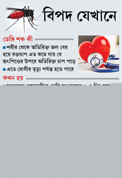 সৃজা, রুমন, রাই তিন জনেই ডেঙ্গি রোগী। আর তিন জনেরই শারীরিক অবস্থার অবনতি হয়। তিন জনেরই মৃত্যুর আগে শরীর ছেড়ে দিয়েছিল। পরজীবী বিশেষজ্ঞেরা জানাচ্ছেন, ওই তিন জনই ডেঙ্গি শক সিন্ড্রোমের শিকার।