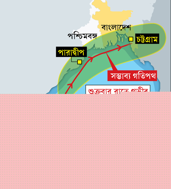 আবহবিদেরা বলছেন, তার গতিপথ ঠিকই থাকবে। পশ্চিমবঙ্গ উপকূলের কাছে এসে সেটি বাঁক খেয়ে চলে যাবে বাংলাদেশের চট্টগ্রামের দিকে। তবে ঘূর্ণিঝড়ে পরিণত না হওয়ায় তার মধ্যে থাকা বায়ুপ্রবাহের গতিবেগ কম হবে। তার ফলে কমে যাবে বিপদের আশঙ্কাও।