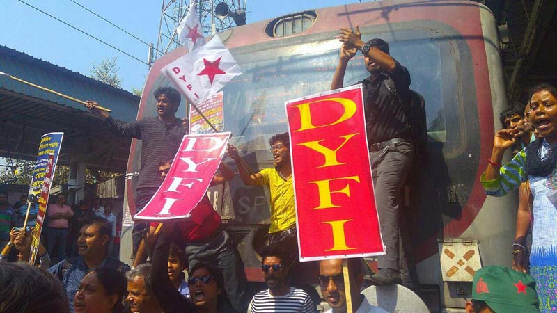 যাত্রীদের সুরক্ষা, রেল হকারদের স্বার্থরক্ষা-সহ একগুচ্ছ দাবিতে শুক্রবার রেল রোকো-র ডাক দিয়েছিল সিপিএম-এর ছাত্র সংগঠন এসএফআই, যুব সংগঠন ডিওয়াইএফআই এবং মহিলা সংগঠন গণতান্ত্রিক মহিলা সমিতি। বিভিন্ন স্টেশনে রেল অবরোধ করে বামপন্থী গণসংগঠনগুলি। কিন্তু শিয়ালদহ দক্ষিণ শাখার যাদবপুর এবং ঢাকুরিয়া স্টেশনে সবচেয়ে উত্তপ্ত হয়ে উঠল পরিস্থিতি। অবরোধ চলতে দেখেও ট্রেন না থামানোর অভিযোগ উঠল চালকের বিরুদ্ধে।