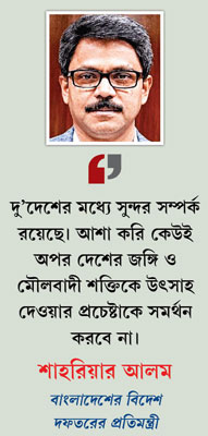 আজ সংসদের অধিবেশনের পরে সংসদ চত্বরেই বাংলাদেশের বিদেশ দফতরের প্রতিমন্ত্রী শাহরিয়ার আলম সাংবাদিকদের জানান, আনন্দবাজারে প্রকাশিত খবর তাঁদের নজরে এসেছে। বেআইনি অর্থলগ্নি সংস্থা সারদা গোষ্ঠীর বিপুল অর্থ জামাতে ইসলামির হাতে আসার অভিযোগে তাঁরা উদ্বিগ্ন। প্রধানমন্ত্রী শেখ হাসিনার নির্দেশে তাঁরা ইতিমধ্যেই বিষয়টির তদন্ত শুরু করেছেন। কী ভাবে, কাদের মাধ্যমে এই অর্থ বাংলাদেশের মৌলবাদীদের হাতে পৌঁছেছে, সে টাকা তার পরে কোথায় ব্যবহৃত হয়েছে, তা খুঁজে বার করার নির্দেশ দিয়েছেন প্রধানমন্ত্রী। শাহরিয়ার আলম বলেন, “দু’দেশের মধ্যে সুন্দর একটি সম্পর্ক রয়েছে। আশা করি দু’দেশের কেউই অপর দেশের জঙ্গি ও মৌলবাদী শক্তিকে উৎসাহ দেওয়ার প্রচেষ্টাকে সমর্থন করবে না।” আলম জানান, তিনি নিজে ভারত-বাংলাদেশ সীমান্ত সংলগ্ন রাজশাহির মানুষ। দু’বছর আগে জামাতে ইসলামির নেতৃত্বে এই অঞ্চলে এমন ভয়ঙ্কর হিংসা ও নাশকতা হয়েছে, যা আগে কখনও হয়নি। তাই রাজশাহির ভুক্তভোগী মানুষের তরফেও তিনি চান, কী ভাবে দুষ্কৃতীদের হাতে অর্থ ও অন্য সাহায্য এসেছে, তা দিনের আলোয় আসুক।