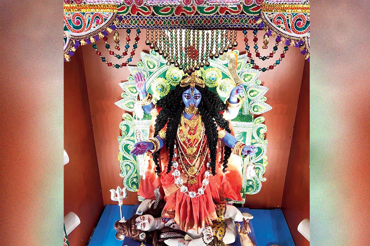 মুখ্যমন্ত্রী মমতা বন্দ্যোপাধ্যায়ের বাড়ির কালীপ্রতিমা। নিজস্ব চিত্র