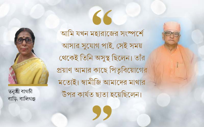 • রামকৃষ্ণ মিশনের রীতি অনুযায়ী সঙ্গীতের মাধ্যমে তাঁকে শেষ শ্রদ্ধা জানানো হয়।