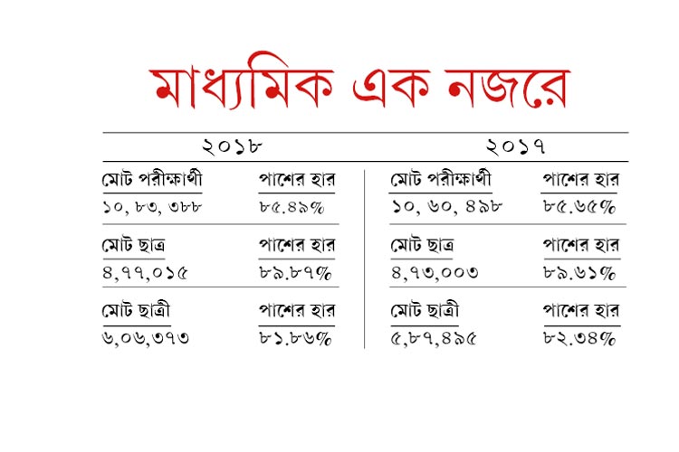 এ বার মোট ১০ লক্ষ ৮৩ হাজার ৩৮৮ পরীক্ষার্থীর মধ্যে ছাত্রের সংখ্যা চার লক্ষ ৭৭ হাজার ১৫। ছাত্রীর সংখ্যা ছ’লক্ষ ছ’হাজার ৩৭৩। সংখ্যালঘুদের ক্ষেত্রেও ছাত্রী বেশি— এক লক্ষ ৭৪ হাজার ৬৭৮ জন। ছাত্র এক লক্ষ দু’হাজার ৬২০ জন। মধ্যশিক্ষা পর্ষদের সভাপতি কল্যাণময় গঙ্গোপাধ্যায়ের ব্যাখ্যা, সব স্তরের মানুষই সন্তানকে অন্তত মাধ্যমিক স্তর পর্যন্ত পড়ানোর চেষ্টা করছেন। পাশের হারে ছাত্রীরা পিছিয়ে থাকলেও অচিরেই তারা ছাত্রদের ধরে ফেলবে বলে আশা প্রকাশ করেন পর্ষদ-সভাপতি। তিনি বলেন, ‘‘ছাত্র ও ছাত্রীদের মধ্যে ফারাক আগে অনেক বেশি ছিল। ধীরে ধীরে তা কমছে। কমে আসছে।’’