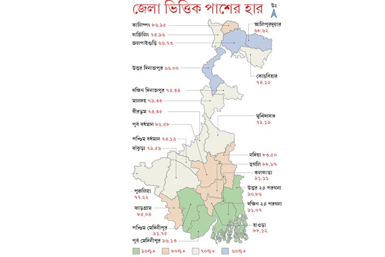 গত বার বিজ্ঞানে ‘এএ’ (৯০-১০০ নম্বর) পাওয়া পড়ুয়ার সংখ্যা অন্যান্য বিষয়ের তুলনায় কম ছিল। এ বার তা বেড়েছে। তবে প্রথম ও দ্বিতীয় ভাষা, ইতিহাস, ভূগোলে ‘এএ’ পাওয়া পরীক্ষার্থীর সংখ্যা কমেছে। দ্বিতীয় ভাষায় গত বার ১১ হাজার ৪১৯ জন ‘এএ’ পেয়েছিল। এ বার তা কমে হয়েছে ৫৩০৫। এ বছর পাশের হার সব থেকে বেশি পূর্ব মেদিনীপুর জেলায়। তার পরে আছে পশ্চিম মেদিনীপুর, কলকাতা, দক্ষিণ ২৪ পরগনা এবং কালিম্পং।