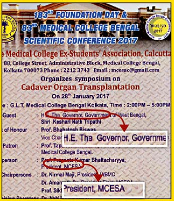 যদিও এর পরে প্রাক্তনী সংগঠনে এত দিন নির্মল-ঘনিষ্ঠ বলে পরিচিত পদাধিকারীরাও ঠারেঠোরে নিজেদের বিরক্তি বুঝিয়ে দিয়েছেন। সংগঠনের সচিব অভিজিৎ চৌধুরী এবং সভাপতি প্রশান্তকুমার ভট্টাচার্য সাফ জানিয়েছেন, মেডিক্যালের অনুষ্ঠানে কোনও রাজনীতি থাকবে না। প্রতি বারই এই আলোচনাসভায় প্রধান অতিথি হন কোনও এক বিশিষ্ট। এ বছর রাজ্যপালকে আমন্ত্রণ জানানো হয়েছে। তাঁদের কথায়, ‘‘আমরা গর্বিত যে, উনি আমন্ত্রণ গ্রহণ করেছেন। এই প্রথম মেডিক্যালে পা রাখছেন। তাতে অন্য কার কী মনে হচ্ছে সেটা গুরুত্বপূর্ণ নয়।’’