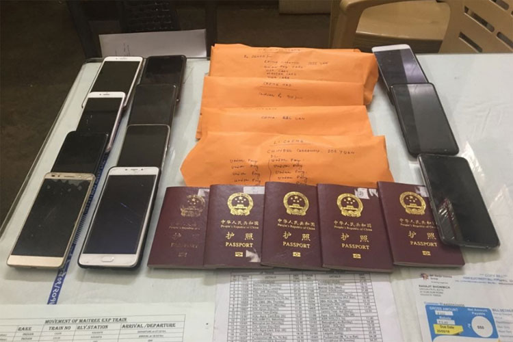ধৃতদের কাছ থেকে বাজেয়াপ্ত ফোন, পাসপোর্ট।