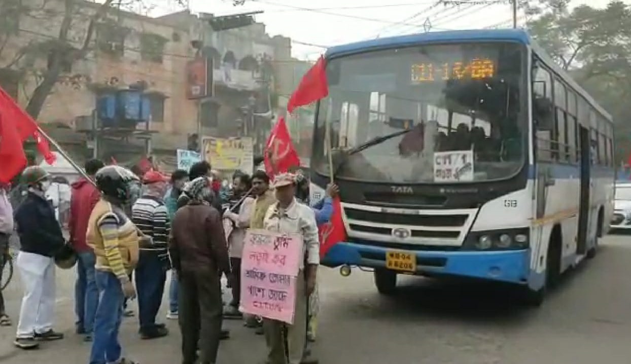 • ধূপগুড়িতে সরকারি বাস আটকে বিক্ষোভ বামেদের।