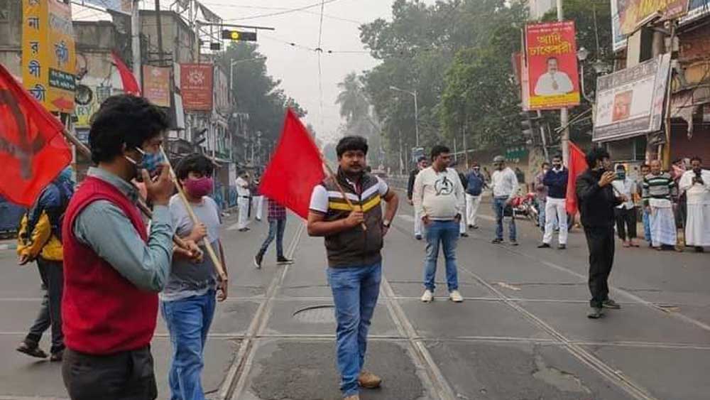 • শ্যামবাজার পাঁচ মাথার মোড়ে অবস্থান বিক্ষোভ বাম কর্মী ও সমর্থকদের।