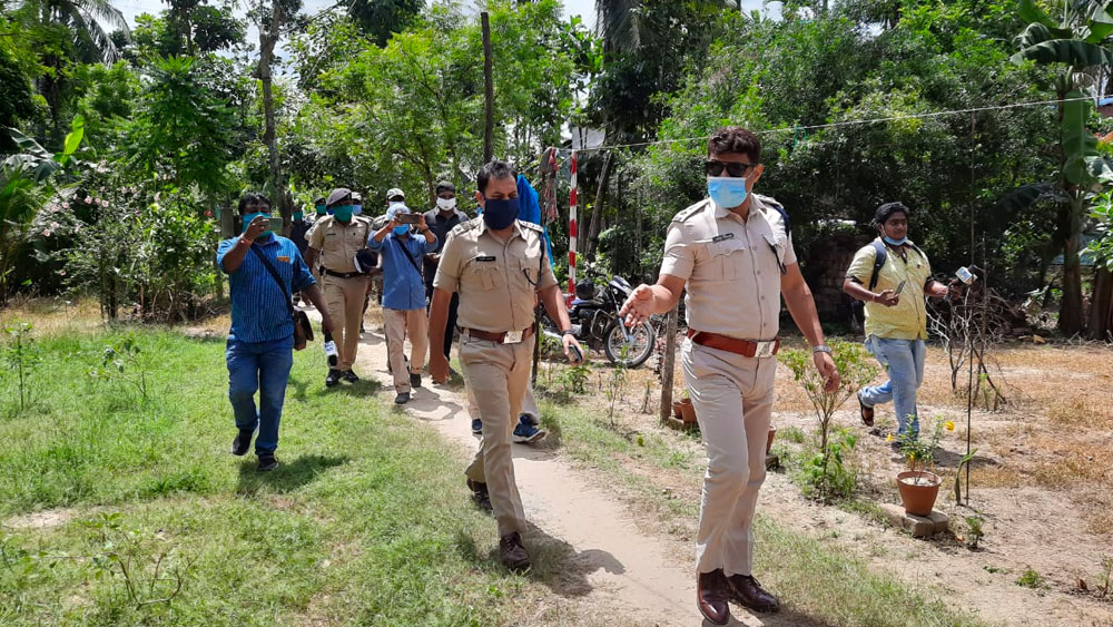 ঘটনাস্থল পরিদর্শনে পুলিশ। নিজস্ব চিত্র