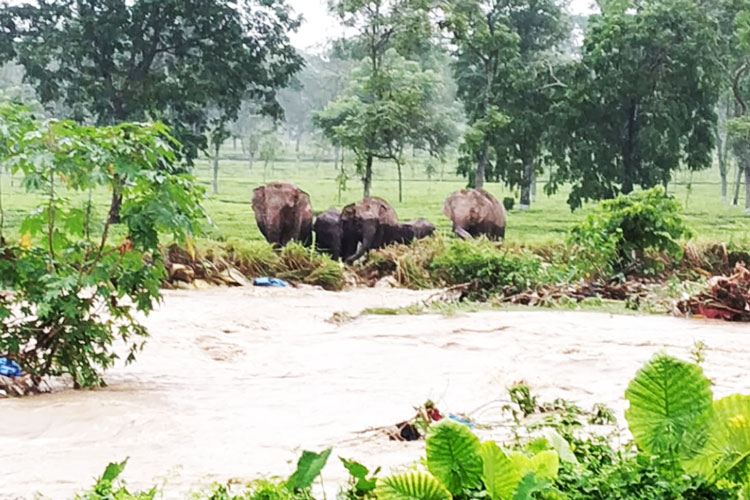 কিন্তু, সেই রাস্তায় হাতি নালা নামে একটি ঝোরা পেরোতে হয়। হড়পা বানে সেই নালাতে জল বেড়ে যায় এবং খরস্রোতা হয়ে পড়ে। বনকর্মীদের ধারণা, শাবকদের নিয়ে সেই নালার তীব্র স্রোত পেরোনোর ঝুঁকি নিতে পারেনি হাতির দলটি। তাই তারা আটকে পড়ে।