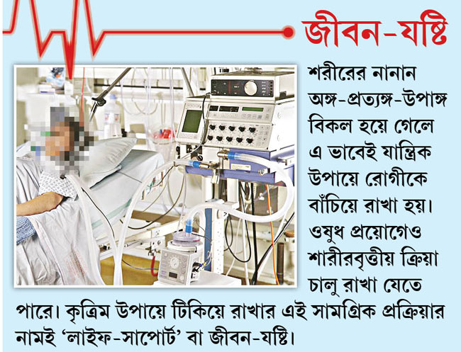 শুধু অমলবাবুর পরিবার নয়, বহু পরিবারের কাছেই এই সব ক্ষেত্রে সিদ্ধান্ত নেওয়াটা বেশ বড় সমস্যা। প্রশ্ন উঠছে, লাইফ সাপোর্ট (জীবন-যষ্টি বা কৃত্রিম উপায়ে জীবনবৃত্ত সচল রাখা) খুলে নিয়ে মৃত্যু ত্বরান্বিত করাটাই কি সমাধানের রাস্তা? সেই রাস্তায় যে হাজারো আইনি জটিলতা!