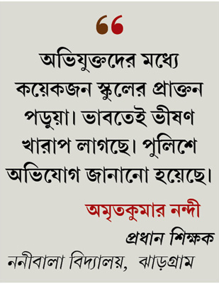 স্থানীয়দের প্রশ্ন, অভিযুক্তরা প্রকাশ্যে এমন দুষ্কর্ম করার সাহস কোথা থেকে পাচ্ছে? অভিযোগ উঠেছে, শাসক দলের এক পুর-কাউন্সিলের স্নেহধন্য ওই অভিযুক্তদের শনিবারও এলাকায় মোটরবাইকে চেপে বেড়াতে দেখা গিয়েছে। এ প্রসঙ্গে ঝাড়গ্রামের ভারপ্রাপ্ত পুলিশ সুপার ভারতী ঘোষ বলেন, “প্রধান শিক্ষকের অভিযোগের ভিত্তিতে মামলা রুজু হয়েছে। অভিযুক্তদের খোঁজে তল্লাশি চালানো হচ্ছে। আমরা কড়া পদক্ষেপ নেব।”