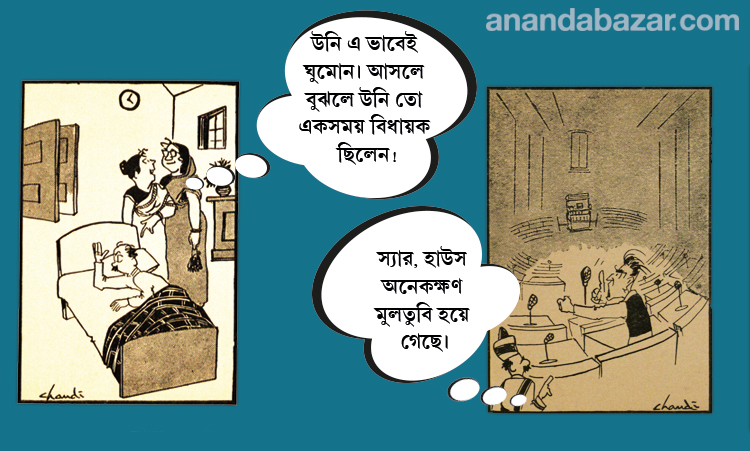কার্টুন দু'টি চণ্ডী লাহিড়ীর 'থার্ড আই ভিউ' বইটি থেকে নেওয়া।