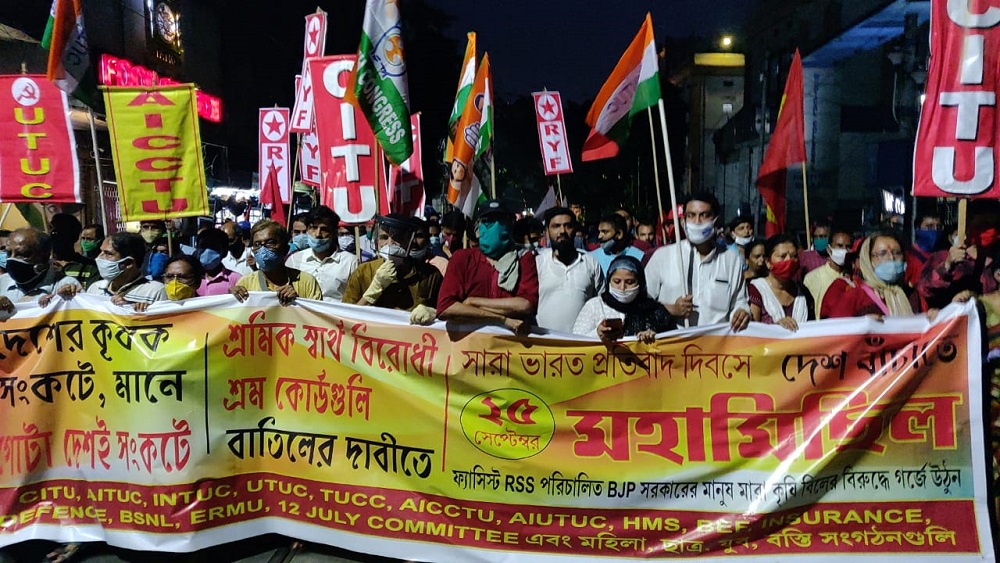 দিনভর নানা প্রতিবাদের পরে সন্ধ্যায় ধর্মতলা থেকে শ্যামবাজার পর্যন্ত বাম ও কংগ্রেসের যৌথ মিছিলে ভিড় ছিল চোখে পড়ার মতো। শ্রমিক সংগঠনগুলির ডাকা ওই মিছিলে সামনের সারিতে ছিলেন ট্রেড ইউনিয়নের নেতারাই। মিছিলের পিছনে পা মিলিয়েছিলেন বামফ্রন্ট চেয়ারম্যান বিমান বসু, বিরোধী দলনেতা আব্দুল মান্নান, বাম পরিষদীয় নেতা সুজন চক্রবর্তী, কংগ্রেস সাংসদ প্রদীপ ভট্টাচার্য, অমিতাভ চক্রবর্তী, প্রাক্তন বিধায়ক দেবপ্রসাদ রায়েরা। ছিলেন যুব কংগ্রেস সভাপতি শাদাব খান, আইএনটিইউসি-র সভাপতি কামরুজ্জামান কামার, সিটুর রাজ্য সম্পাদক অনাদি সাহু ও বিভিন্ন বাম দলের নেতৃত্ব।