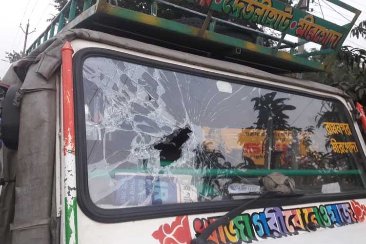 ভাঙচুর চালানো হয়েছে বাসে।—নিজস্ব চিত্র।