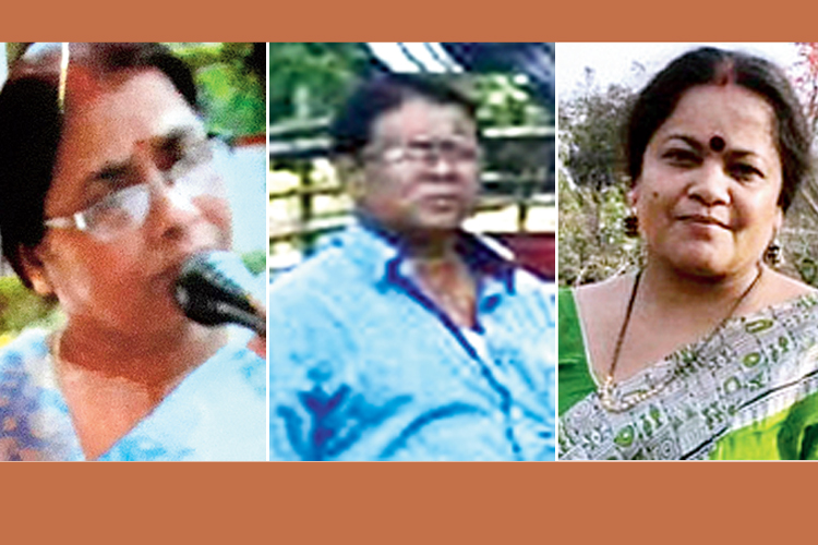 (বাঁ দিক থেকে) আশালতা পাঠক, নীহারেন্দু বিশ্বাস ও লিলি পাঠক। —নিজস্ব চিত্র