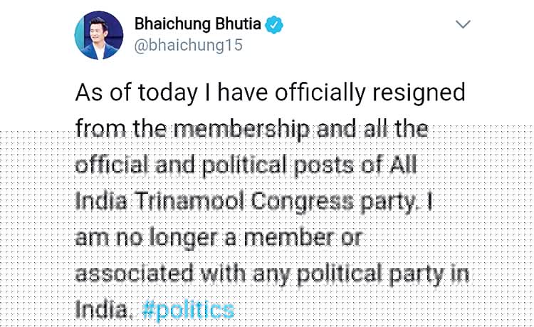 নিজের ট্যুইটার হ্যান্ডেলে তৃণমূল ছাড়ার কথা ঘোষণা ভাইচুঙের।