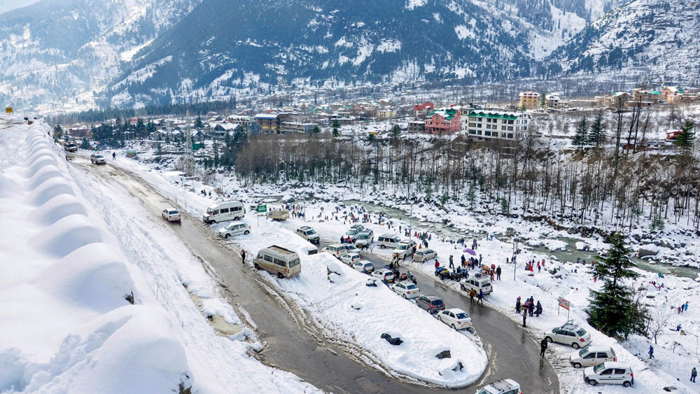 বরফের চাদরে ঢাকা মানালি। ছবি: পিটিআই