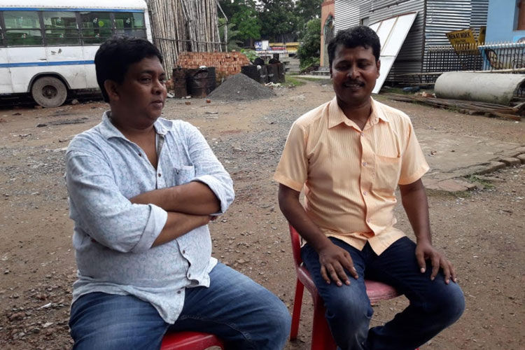আক্রান্ত তৃণমূল নেতা (বাঁ দিকে) ও তাঁর দেহরক্ষী। —নিজস্ব চিত্র