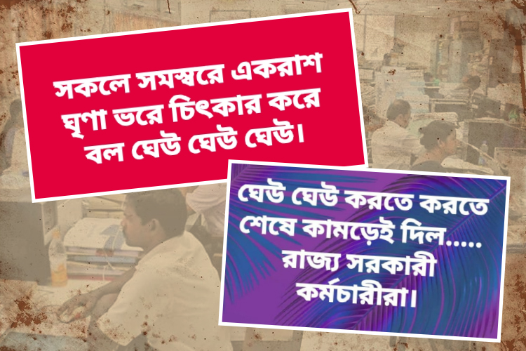 এর সঙ্গে যোগ হয়েছে স্বয়ং মুখ্যমন্ত্রীর মন্তব্য। মমতা বন্দ্যোপাধ্যায় নিজেই একটি সভায় ‘ঘেউ ঘেউ’ মন্তব্য করেছেন। তাতে কার্যত অপমানিত বোধ করেছেন সরকারি কর্মীরা। সেই সময় ফেসবুক, হোয়াটস অ্যাপে এ নিয়ে প্রচুর প্রতিবাদ, ক্ষোভ ঝরে পড়েছিল।