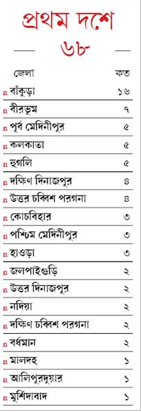 ২০১৩ থেকে পর-পর তিন বছর বেসরকারি স্কুল বিবেকানন্দ শিক্ষা নিকেতন থেকে এক জন করে প্রথম দশে এসেছিল। এ বার তাদের অন্বেষা পাইন মেধা তালিকার শীর্ষে। স্কুলের পাঁচ জন ছাত্রছাত্রী রয়েছে প্রথম দশে। ২০১৫ সালে জেলা স্কুলের ১০ জন প্রথম দশে ছিল। এ বার অন্বেষার থেকে এক নম্বর কম পেয়ে দ্বিতীয় তাদের মোজাম্মেল হক। সেরা দশের তালিকায় রয়েছে ছ’জন। প্রথম দশটি স্থানে যে ৬৮ জন রয়েছে, তাদের মধ্যে বাঁকুড়ার পরীক্ষার্থী ১৭। বাঁকুড়া গার্লস হাইস্কুল, জয়পুর হাইস্কুল, বড়জোড়া হাইস্কুল, সোনামুখীর বিন্দুবাসিনী জুবিলি হাইস্কুল, মড়ার সম্মিলনী হাইস্কুলের পড়ুয়ারাও জায়গা করে নিয়েছে মেধা তালিকায়।