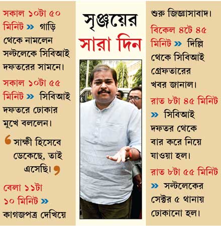 সিবিআই সূত্রের খবর, জেরার মুখে সৃঞ্জয় জানান, সারদা ও তাঁর মধ্যে যে চুক্তি হয়েছিল সেই মোতাবেক তিনি সুদীপ্তর কাছ থেকে মাসে ৬০ লক্ষ করে টাকা নিতেন। তদন্তকারীদের অভিযোগ, এ ভাবে সৃঞ্জয়কে মোট ২০ কোটি টাকা দিয়েছিলেন সুদীপ্ত। সিবিআইকে সুদীপ্ত বলেছেন, তাঁর চ্যানেলকে যে সংবাদ দেওয়া হত, তাতে মূলত তৃণমূলের গুণগানই থাকত। তাঁর অভিযোগ, এই চ্যানেলে যাতে শুধু তৃণমূলের গুণগানই দেখানো হয়, তা নিশ্চিত করার জন্যই কুণাল ঘোষকে চ্যানেল টেন-এর হর্তাকর্তা হিসেবে বসিয়ে দেন সৃঞ্জয়। তবে সিবিআইয়ের তদন্তকারীদের বক্তব্য, সৃঞ্জয় সামনে থাকলেও তৃণমূলের শীর্ষ নেতাদের কয়েক জন এর পরিকল্পনা করেছিলেন। সিবিআইয়ের অভিযোগ, বিনিময়ে তৃণমূল নেতৃত্ব এবং পরবর্তী কালে মমতা বন্দ্যোপাধ্যায়ের সরকার সারদার বেআইনি কাজকারবারে চোখ বুজে থাকবেএমন প্রতিশ্রুতিও দেওয়া হয়েছিল সুদীপ্ত সেনকে। তদন্তকারীরা জেনেছেন, ডেলো পাহাড়ে মুখ্যমন্ত্রী মমতা বন্দ্যোপাধ্যায়ের সঙ্গে তাঁর যে বৈঠক হয়েছিল, সেখানেও তাঁকে একই প্রতিশ্রুতি দেওয়া হয়। সুদীপ্ত সিবিআইকে জানিয়েছেন, তিনিও মমতাকে পাল্টা আশ্বাস দিয়েছিলেন, তাঁর এতগুলি মিডিয়ার প্রচার দিয়ে তিনি মমতাকে প্রধানমন্ত্রীর দৌড়ে এগিয়ে দেবেন।