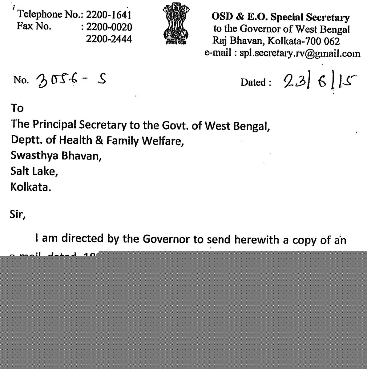 দৃষ্টি আকর্ষণ করে খোদ রাজ্যপালের চিঠি এসেছে এক মাস হতে চলল! এখনও আড় ভাঙল না স্বাস্থ্যভবনের!