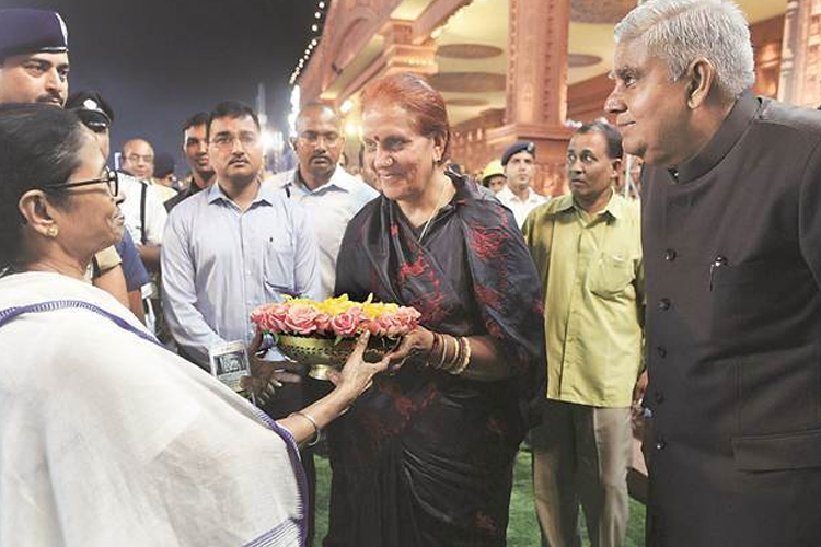 রাজ্যপাল জগদীপ ধনখড় এবং মুখ্যমন্ত্রী মমতা বন্দ্যোপাধ্য়ায়। নিজস্ব চিত্র