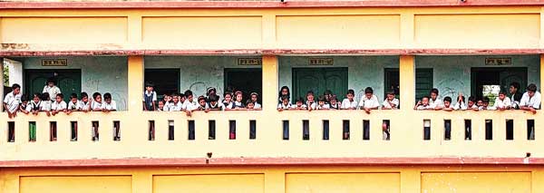 স্কুলের পিছনেই তুমুল বোমা-গুলির লড়াই চলছে। আতঙ্কে ক্লাসঘর ছেড়ে বেরিয়ে পড়েছে পড়ুয়ারা।