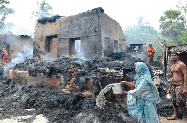 এক বাড়ির গরু অন্যের বাগানে ঢুকে খড়-বিচালি খেয়েছিল। শনিবার ভোরে সামান্য এই ঘটনাকে কেন্দ্র করে যে গোলমালের সূত্রপাত, তা গড়াল দু’পক্ষের গুলির লড়াইয়ে। নিহত হয়েছেন এক যুবক। গুলিবিদ্ধ এক বালক-সহ ৫ জন। একের পর এক বাড়িতে অগ্নিসংযোগ, লুঠপাট চলে। পুড়িয়ে দেওয়া হয় মোটরবাইক, নৌকো, ধানের গোলা। ভাঙচুর করে পোড়ানো হয় গোটা দশেক দোকান। মহিলাদের শ্লীলতাহানিও হয়েছে।