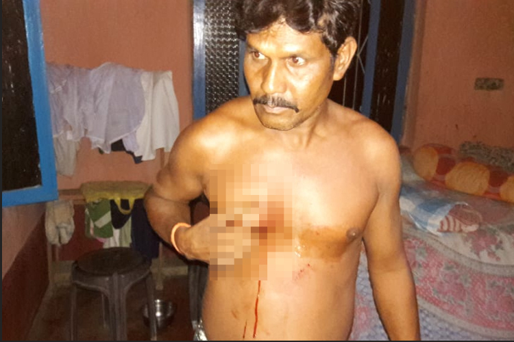 পুলিশের গুলি ছিটকে লেগে আহত হয়েছেন দাবি এই বিজেপি সমর্থকের।— নিজস্ব চিত্র।