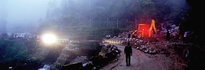 রাতেও চলছে ধস সরানোর কাজ। কিছু ক্ষণ ধরে রাস্তা সারাই করার পরে কিছু
