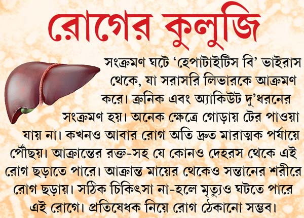 অথচ এখনও সরকারি স্বাস্থ্য পরিষেবায় সেই পরীক্ষাটাই করা হয় না। তাই অনেক সময়েই জানা হয়ে ওঠে না, প্রসূতির শরীরে ওই রোগের ভাইরাস আদৌ আছে কি না। যে-হেতু জন্মের পরে শিশুদের টিকাকরণ হচ্ছে না, তাই কোনও প্রসূতির হেপাটাইটিস বি ভাইরাস থাকলে তাঁর সন্তানদের মাধ্যমে রোগ ছড়ানোর ধারা অব্যাহতই থাকছে।
