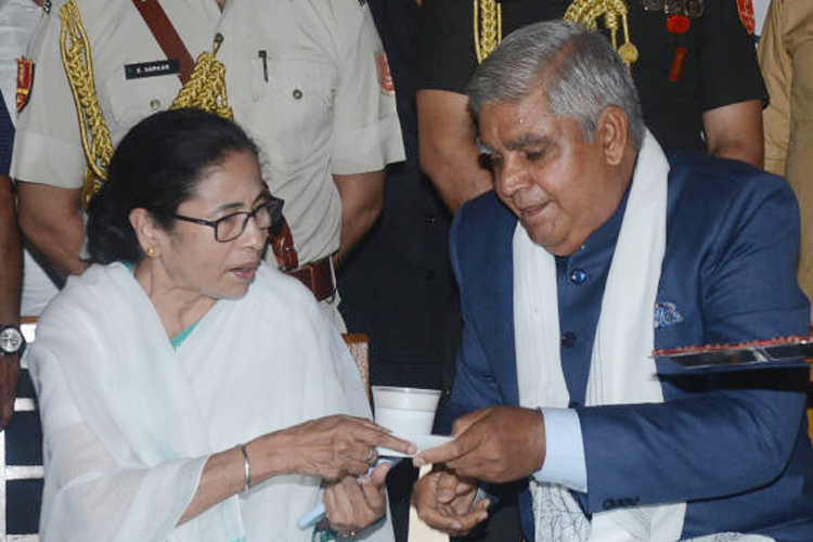 সাক্ষাতে যতই সৌজন্য থাক, গত আড়াই মাসে জগদীপ ধনখড়ের সঙ্গে মমতা বন্দ্যোপাধ্যায়দের সঙ্ঘাতের পারদ অনেকটাই উপরে উঠে গিয়েছে। —ফাইল চিত্র।