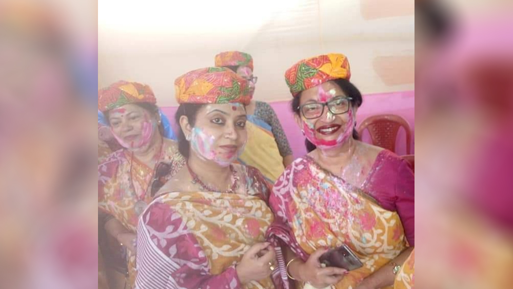 খেলব হোলি রং দেব না? বাঁ দিক থেকে শ্রীলেখা মিত্র ও ঋতাভরী চক্রবর্তী।