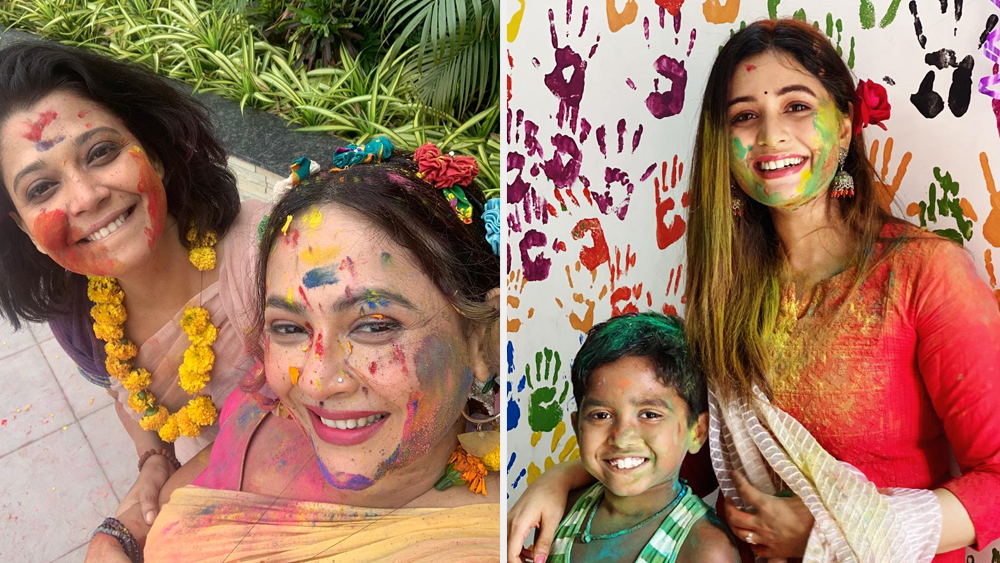 মেদিনীপুরের বাড়িতে গিয়ে নিজের মতো করে রং খেলেছেন অভিনেতা অনির্বাণ ভট্টাচার্য। এ দিন তিনি বলেন, ‘‘বাড়ির লোকজনের সঙ্গে নিজের মতো করে দোল খেলছি। একটা ছবির চিত্রনাট্যও পড়লাম। ভালই কাটছে।’’ রঙের উৎসবে মেতে ওঠা প্রিয়ঙ্কা সরকার বললেন, ‘‘বাঘাযতীন তরুণ সঙ্ঘে সকালবেলা প্রভাতফেরিতে অংশ নিয়েছিলাম। তার পর ছেলে সহজকে নিয়ে রং খেলেছি। সন্ধ্যাবেলা দোলের অনুষ্ঠান রয়েছে।’’