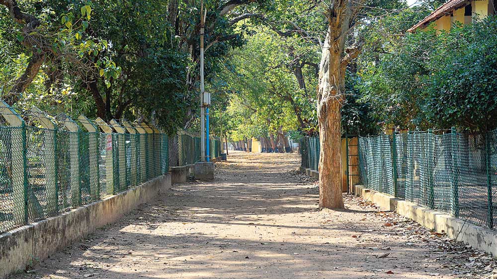 বিকল্প: বসন্তোৎসবের দিনে সুনসান শান্তিনিকেতন। ছবি: বিশ্বজিৎ রায়চৌধুরী।