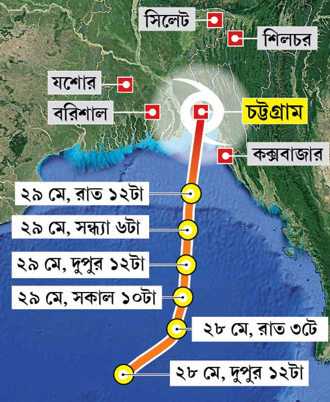 • কোথায় আঘাত করার কথা: চট্টগ্রাম উপকূলে