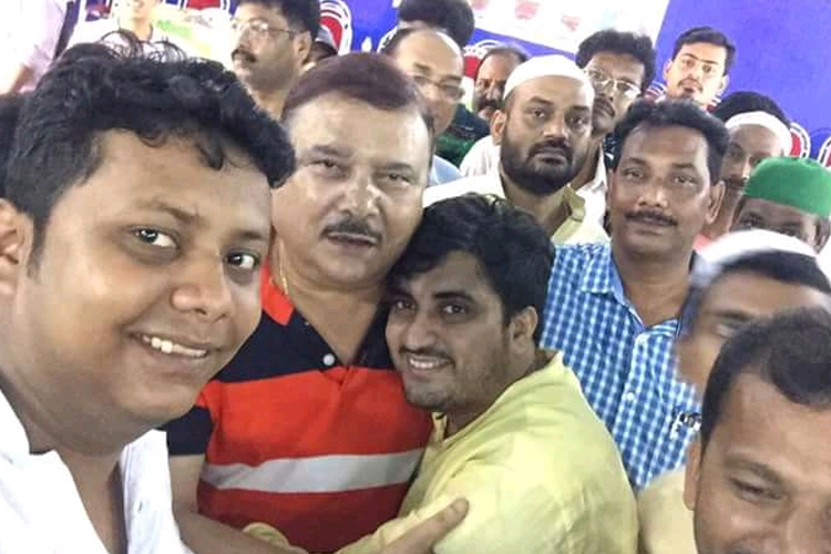 তৃণমূল নেতা মদন মিত্রের সঙ্গে তৃণমূল ছাত্রপরিষদের নেতারা।—নিজস্ব চিত্র।