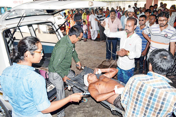 আহতকে পাঠানো হচ্ছে হাসপাতালে।