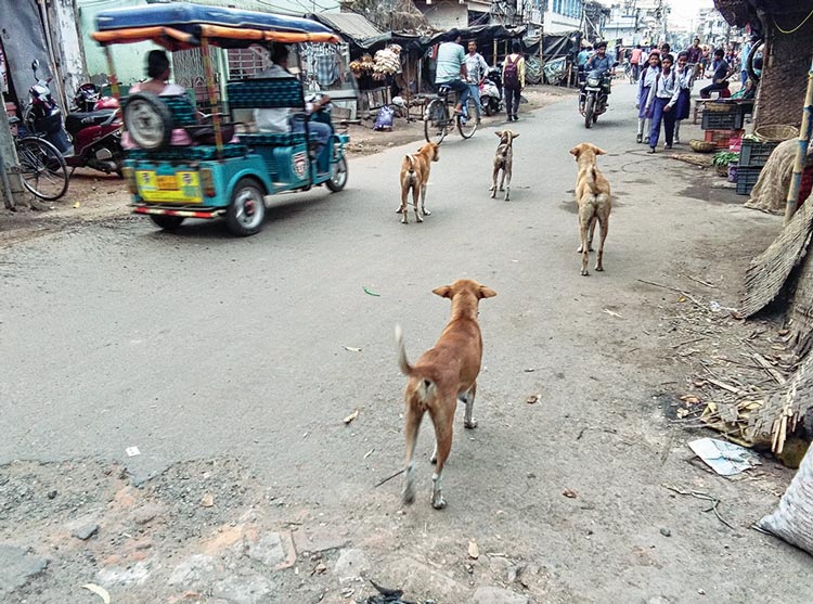 রাস্তায় কুকুরের দাপট। নিজস্ব চিত্র