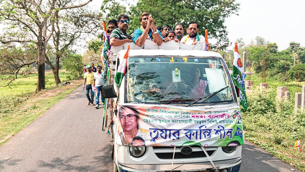 প্রচারে আমতার তৃণমূল প্রার্থী তুষারকান্তি শীল। ছবি: সুব্রত জানা।