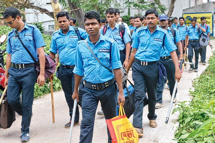 সিভিক ভলান্টিয়াররা চলেছেন বুথ পাহারায়। চণ্ডীতলার মশাটে।