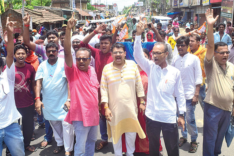 বিক্ষোভ: মেলাতলায় জিটি রোড অবরোধ বিজেপি কর্মী-সমর্থকদের।