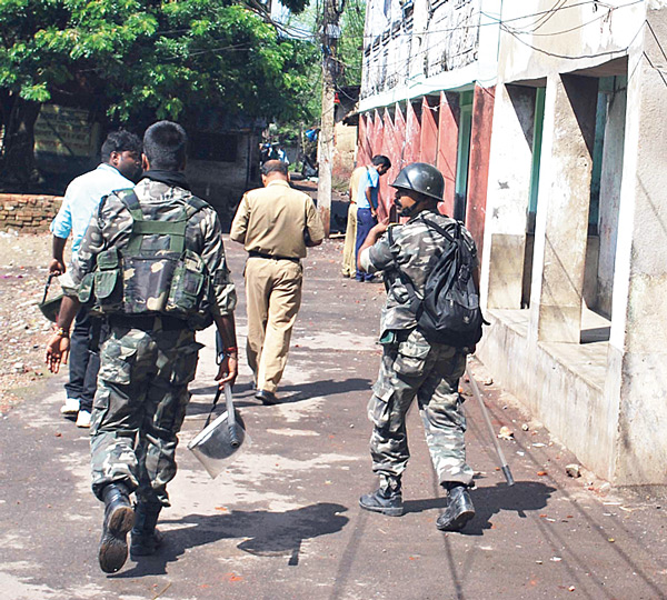 গোলমালের পর এলাকায় পুলিশ ও র্যাফ। ছবি: সুব্রত জানা।