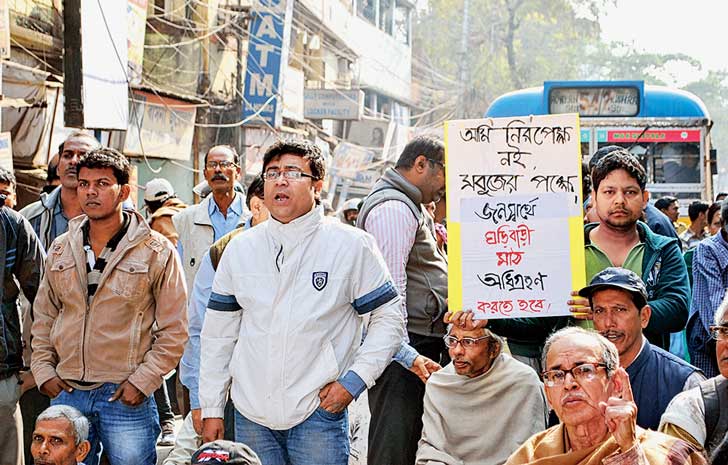 বিভিন্ন রাজনৈতিক দলের কর্মীরা তাতে অংশ নিলেও ছিল না কোনও দলীয় পতাকা।--নিজস্ব চিত্র।
