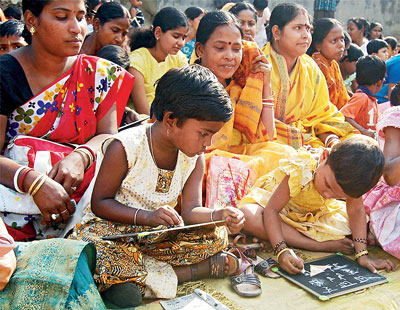 ভাষা দিবসে হাতেখড়ি। বাগনানে নিজস্ব চিত্র।