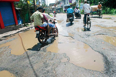 ডোমজুড়ের মহিয়াড়ির ফটির বাজারের কাছে রাস্তার অবস্থা। ছবি: রমাপ্রসাদ গঙ্গোপাধ্যায়।