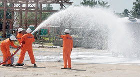 হাওড়ায় গত কয়েক বছরে একাধিক রাসায়নিক কারখানায় আগুন লাগার ঘটনা ঘটেছে। শেষ ঘটনাটি ঘটে শালিমার রং কারখানায়। সেই ভয়াবহ অগ্নিকাণ্ড থেকে শিক্ষা নিয়ে বিভিন্ন রাসায়নিক কারখানার কর্মীদের আগুন নেভাবার প্রশিক্ষণ দেওয়ার ব্যবস্থা করেছিল ইন্ডিয়ান অয়েল কর্পোরেশন। দু’মাসের প্রশিক্ষণ শেষে বৃহস্পতিবার ওই সব কারখানার কর্র্মী ও ইন্ডিয়ান অয়েলের নিজস্ব কর্মীদের নিয়ে রাজ্য অগ্নি নির্বাপন দফতরের উদ্যোগে মৌরিগ্রাম ইন্ডিয়াল অয়েলে এক প্রতিযোগিতার আয়োজন হয়। রাজ্য অগ্নি নির্বাপণ দফতর সূত্রে জানা গিয়েছে, ১০টি দলের মধ্যে এই প্রতিযোগিতা হয়। রাসায়নিক আগুন নেভাবার কাজে কে কী ভাবে সমস্ত যন্ত্রপাতি ব্যবহার করছে তার ওপর তিন দলকে পুরস্কৃত করা হয়। এই প্রতিযোগিতার অন্যতম উদ্যোক্তা দমকল দফতরের আলমপুর শাখার ওসি পুলক শর্মা জানান, এই নকল অগ্নি নির্বাপণ যুদ্ধে যে তিনটি জিনিস দেখা হচ্ছে। তা হল: ১) কী ভাবে আগুনের সঙ্গে লড়াই করছেন কর্মীরা। ২) কী ভাবে অগ্নি নির্বাপনের কাজে যন্ত্রপাতি ব্যবহার করা হচ্ছে। ৩) অগ্নিকাণ্ডের সময় উদ্ধারকার্য কী ভাবে করা হচ্ছে। পুলকবাবু জানান, এ ধরনের আরও কারখানার কর্মীদের এই প্রশিক্ষণ দেওয়ার চেষ্টা করা হচ্ছে।